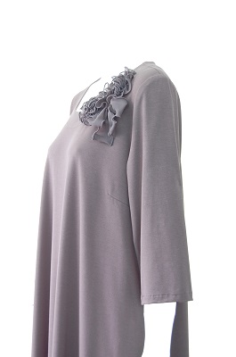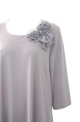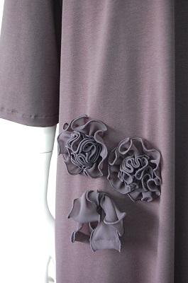 ベア天竺素材の手作りお花を胸元にあしらっています。