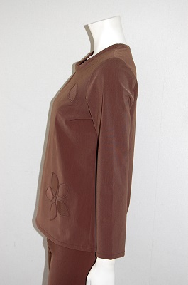 ストレッチ素材ハイテンション生地を使用した手作り葉っぱモチーフが付いたTシャツ。