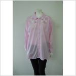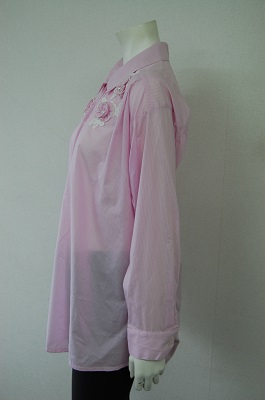 プリンチペッサの新作、首元に花のモチーフをあしらった桜ピンクのブラウスです。